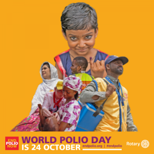 Verdens poliodag 24. oktober, en viktig dag for Rotarianere og Rotaractere. Denne dagen setter vi fokus på det Rotary er kjent for, nemlig innsatsen for å nedkjempe polio for godt. Fortsetter vi slik, blir polio den andre sykdommen mennesker har utryddet. Last ned Rotarys materiell "Tool-kit" om polio. Poliobrosjyre på norsk ligger på vår hjemmeside under publikasjoner. Poliobrosjyre word.