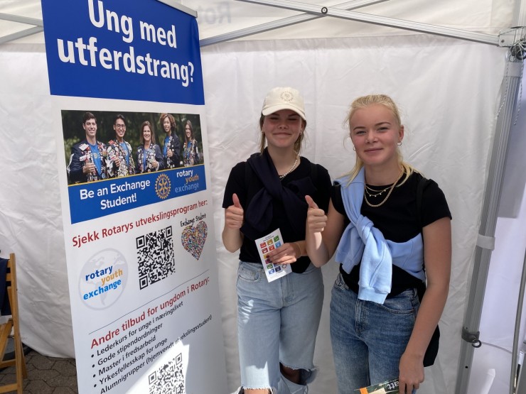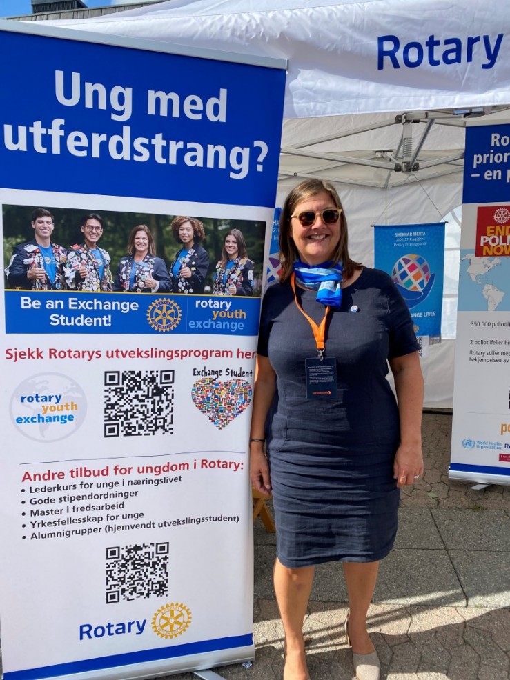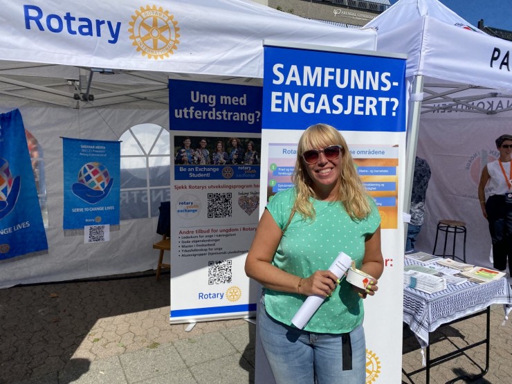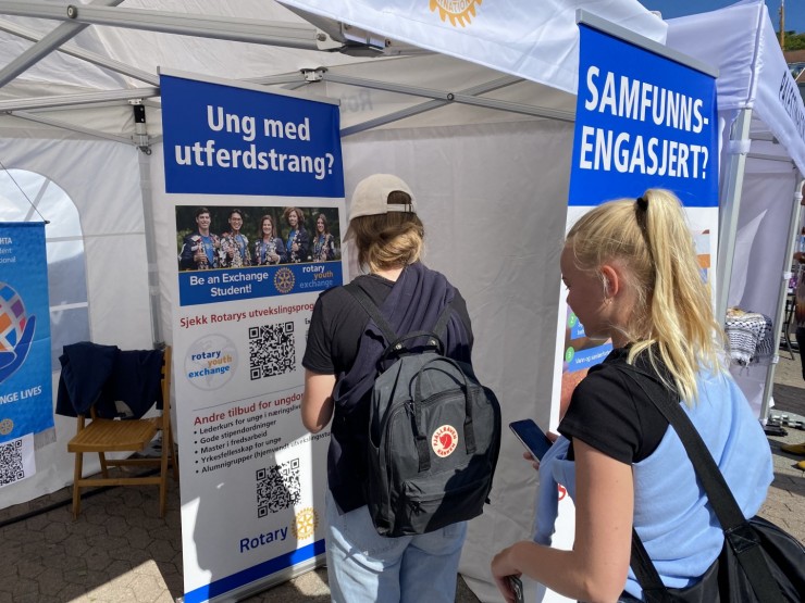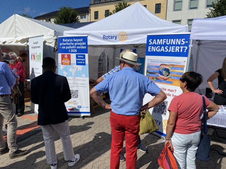 Sandefjord Rotaryklubb var godt synlig under Arendalsuka. De mange besøkende kunne også laste ned en QR-kode for mer info om ungdomsutvekslingen og om Rotarys høyest prioriterte prosjekt - en poliofri verden innen 2026.
