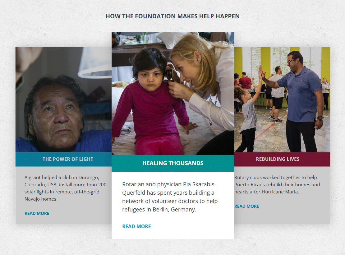 Gjennom Rotaryfondet støtter klubbene prosjekter som redder liv, gir utdanning, skaper arbeidsplasser, beskytter miljøet og fremmer fred.